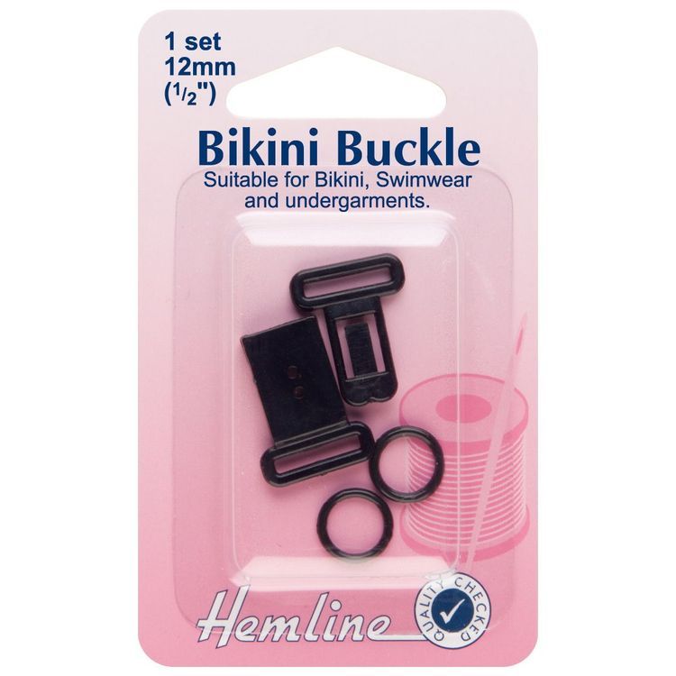 Hemline Brand Bikini Buckle set in black, size 12mm. Suitable for bikinis, swimwear and underwear. Hemline code 460.B
