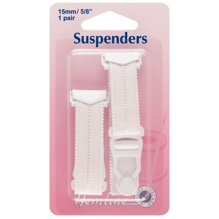 A single set of white suspenders - hook open-ends onto lingerie, making it quick and easy to use.