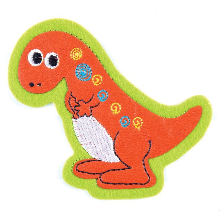A cute orange dinosaur motif for embellishing kids clothes or accessories.