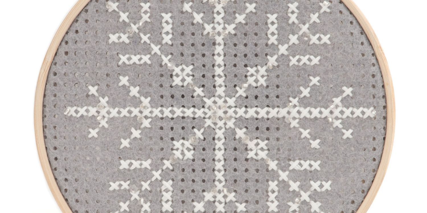 Perfect for beginners, these cross stitch hoop kits are worked on 6 count hole punch polyester felt sheets with polycotton threads.