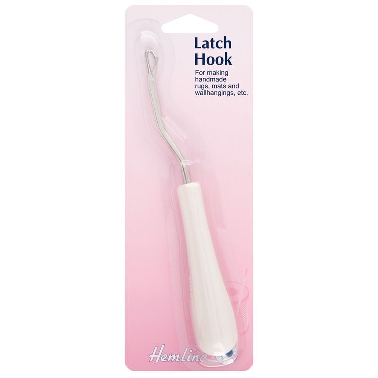 This latch hook tool is useful for making rugs, mats and wall hangings. It has a comfortable plastic handle.