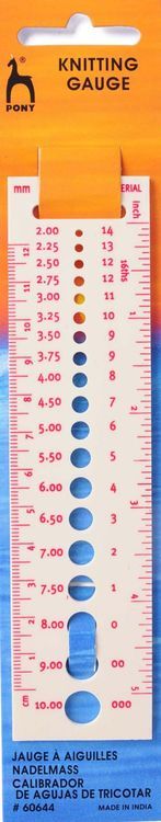 A tool that every knitter needs! This standard size knitting gauge allows you to check needle sizes quickly by simply inserting them into the holes. Also includes a ruler in both centimetres and inches to help with measuring.