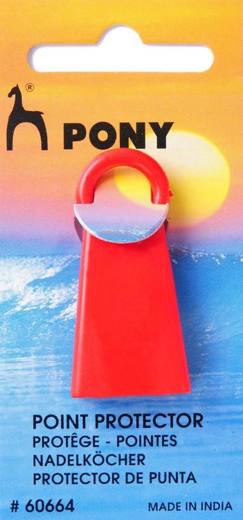 Prevent stitches from slipping off the pins with this handy needle point protector cap. Includes a round loop that's great for storage and available in red.