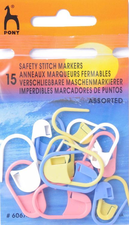 These safety stitch markers slip effortlessly into stitches. With a tiny safety clip design, they securely mark the stitches without slippage or snagging the knit. The large markers will fit needle sizes up to 10mm.