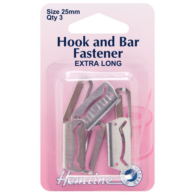Extra long hook and bar fasteners, suitable for wider waistbands on skirts and trousers.