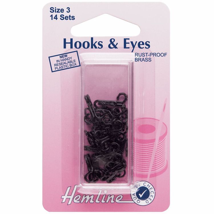 Rustproof brass hooks and eyes, coated in black.