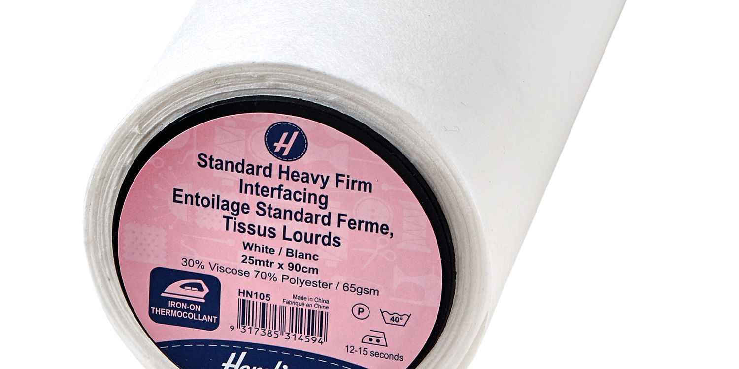 Heavy/firm interlining for providing structure to small areas of garments such as cuffs, collars and belts and for craftwork using fabrics. Suitable for use with lightweight fabrics such as cotton. Iron-on with moderate to hot iron, pressing firmly for 5-10 seconds. Using a damp cloth between the fabric and the iron will allow use of a higher temperature without damaging more delicate fabrics. Machine washable at 40? Centigrade. Dry cleanable.