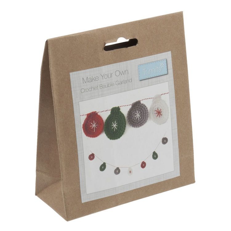 These kits are the perfect introduction to crochet. They include everything you need to create this Christmas decoration. The perfect gift for crochet lovers. Finished size approximately 900mm in length, and each bauble is approximately 60 x 65mm.