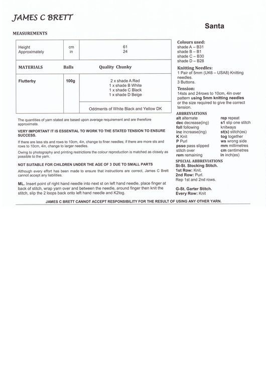 Make a cute Santa doll with this James C Brett pattern, made with chunky yarn.