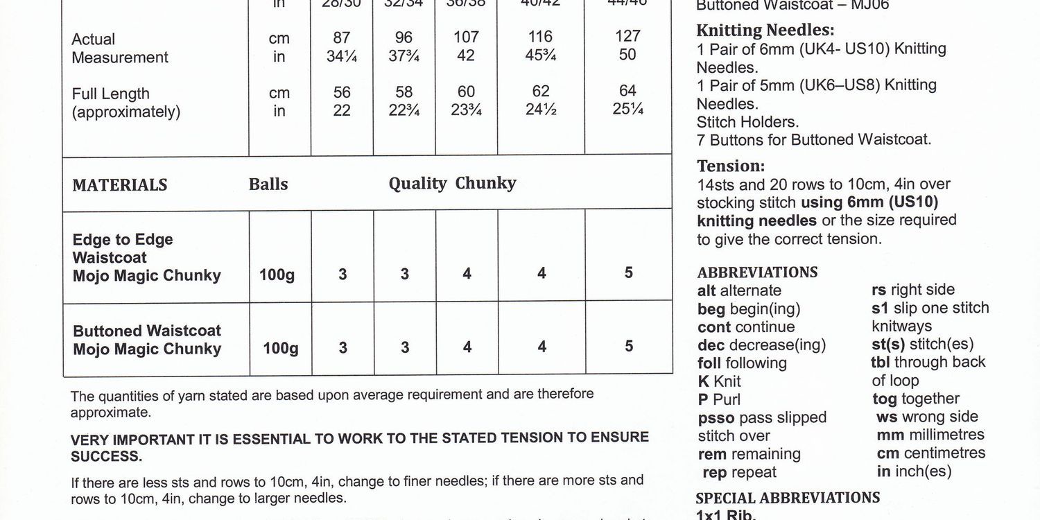 Ladies waistcoat pattern from James C Brett. For Mojo Magic Chunky yarns.