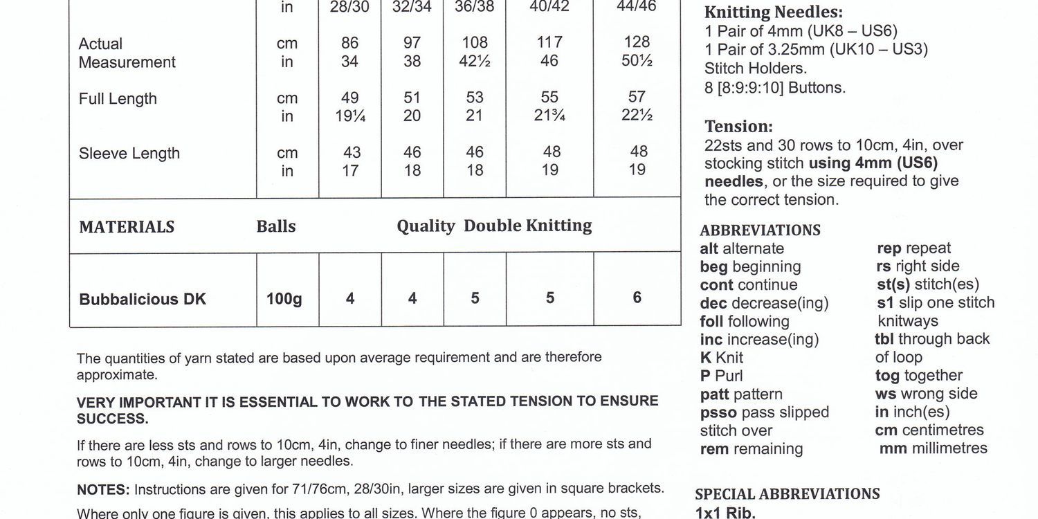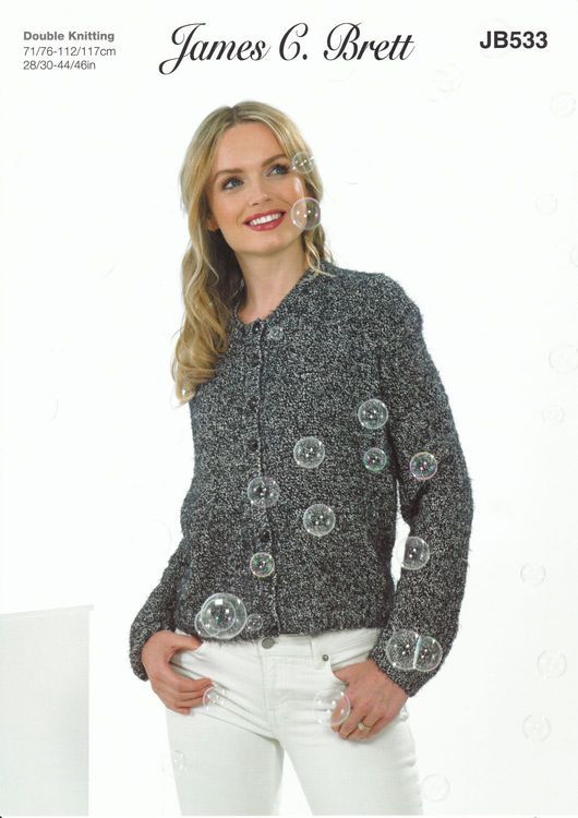Ladies Cardigan pattern from James C Brett. For Bubbalicous DK yarns.