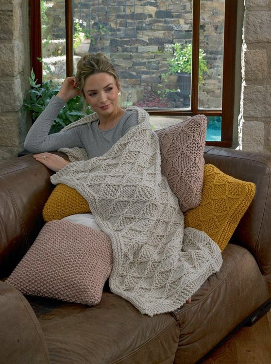 Create a blanket and cushion with this Chunky Knitting Pattern from James C Brett.