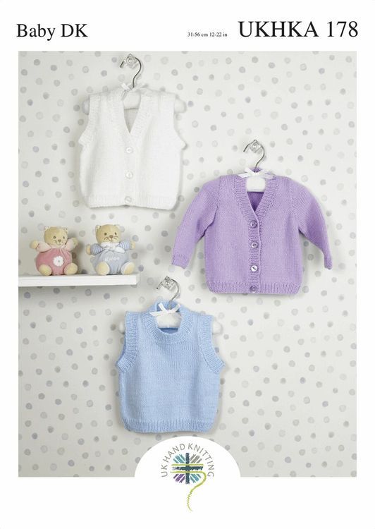 The UKHKA 178 Cardigans & Tank Top Double Knitting Pattern is a must-have for creating warm and unique designs for baby boys and girls.