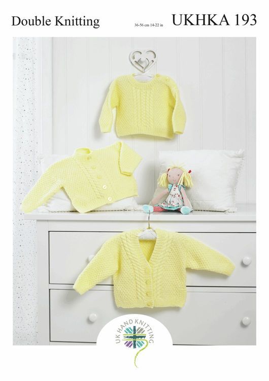 Create great looking clothing for your baby boy or girl with the 193 Cardigans Double Knitting Pattern from UKHKA.