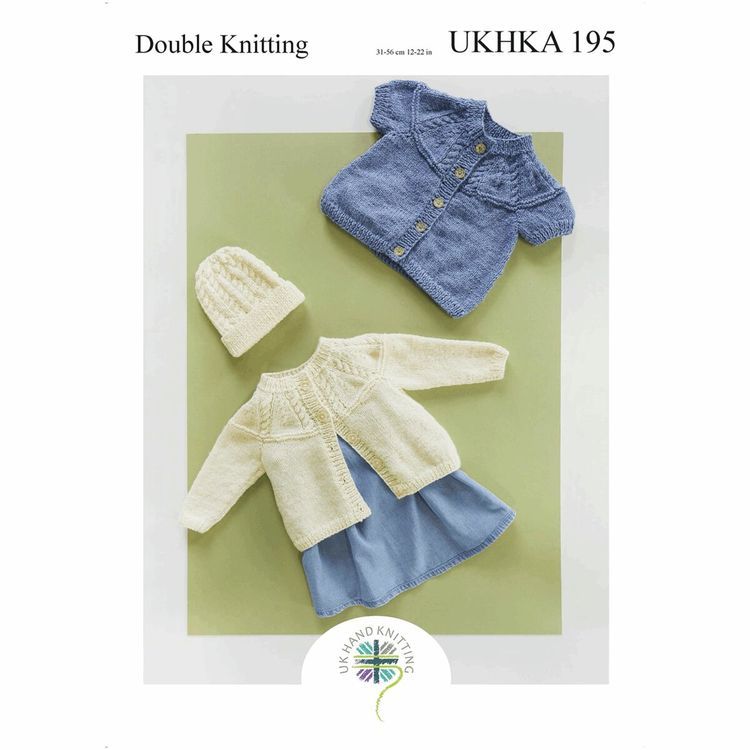 The UKHKA 195 Baby Cardigans & Hat Double Knitting Pattern will help you create stunning knitted clothing and accessories for your baby.