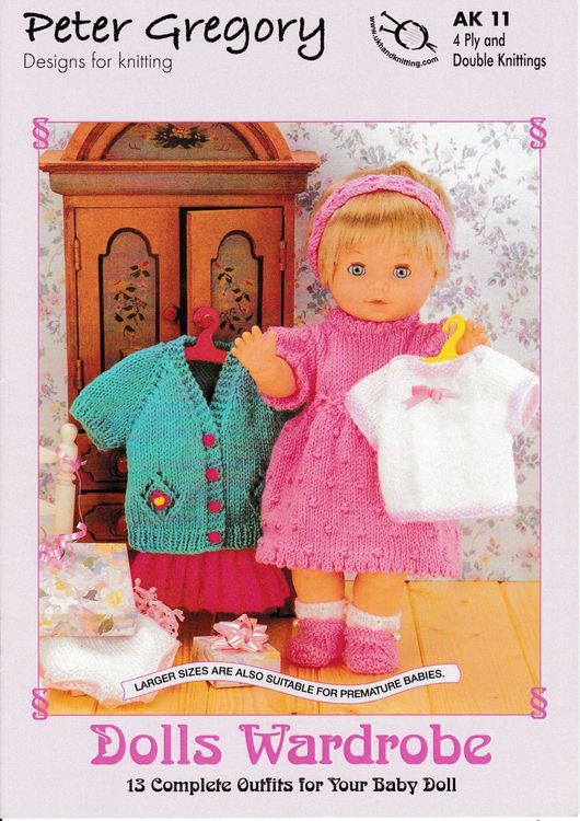 Make 13 complete dolls outfits with this knitting pattern book from Peter Gregory.