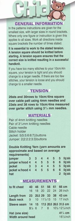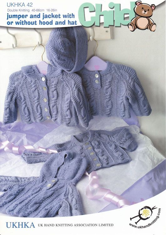 Make a selection of clothes, including jumpers, jackets and hats for children using DK yarn.