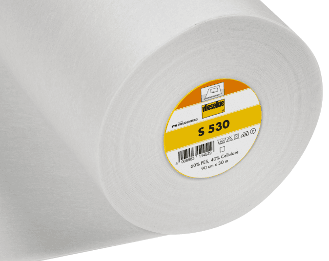 Pelmet interlining. Resistant to washing and cleaning. Retains its shape and is easy to apply with an iron. Medium-weight, stable fusible pelmet interlining made from synthetic fibres. Perfect for creating fabric baskets, bags, belts, hats, and other creative handicrafts. Suitable for wide range of fabrics. Item size: (l/w) 30m x 90cm. Wash at 40 degrees