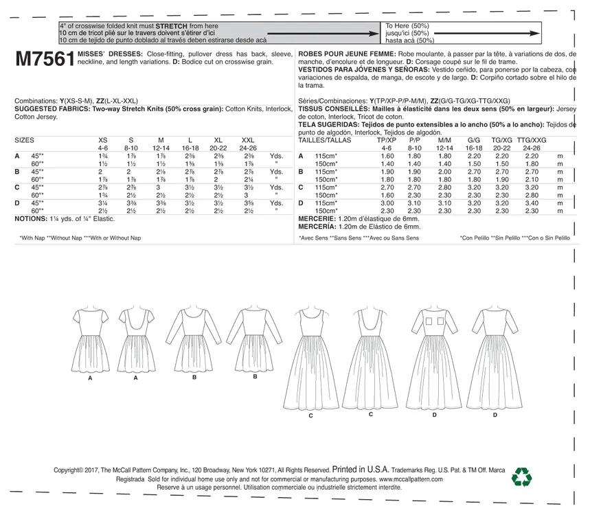 Misses' Pullover, Gathered-Waist Knit Dresses with Sleeve and Hem Options