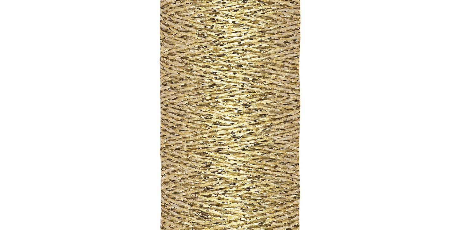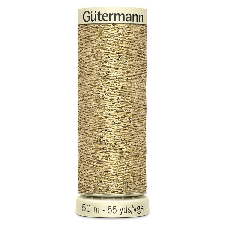 A metallic thread for decorative stitching, decorative knitwear effects and machine embroidery.