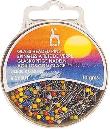 Colourful glass headed pins. Slightly small for my arthritic fingers! Love the colours of the glass topped pins though.