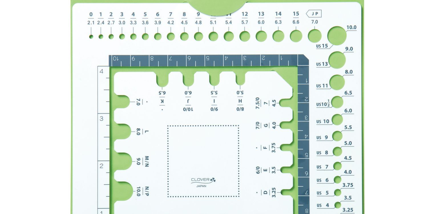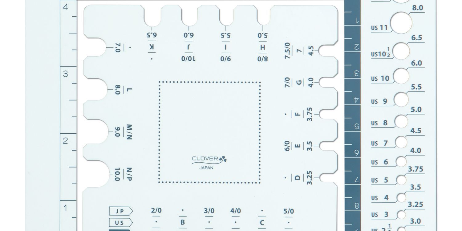 Multi-purpose tool for knitting and crochet. Measure your crochet hook or knitting needle size in US, metric and Japanese standard sizes. The Swatch Ruler allows you to isolate a section of your work to easily count both stitches and rows.How to use: Place the shaft of your crochet hook in the groove that best fits to check your hook size. Place the point of your knitting needle in the hole that fits best to check your needle size. Get an accurate stitch gauge measurement with the 4in (10cm) gauge rulers.