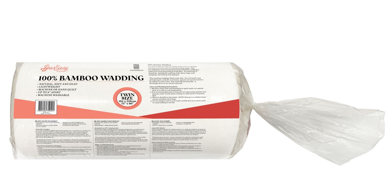 This Sew Easy bamboo wadding is made of 100% natural, soft bamboo fibre, manufactured without chemicals and bleach. Textiles made using bamboo are much more breathable than those made from synthetic materials, and therefore are perfect for use as a wadding within a quilt, or garment. Bamboo wadding is antibacterial, eco-friendly, biodegradable and hypoallergenic. Bamboo is a fast-growing, sustainable crop. Shrinkage is less than 5%. Item size: (l/w) 228.6 x 182.9cm. Cold wash only.