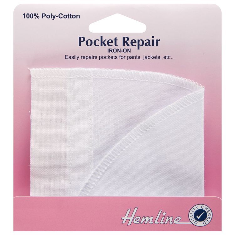 Quick, simple and easy iron-on pocket repair, in the shape and size of a back pocket.