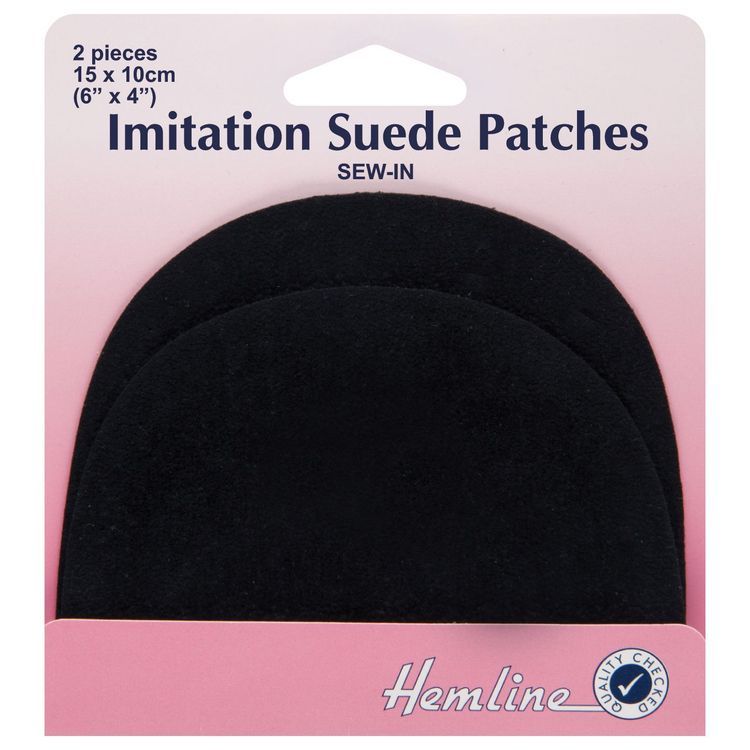 A set of imitation sew-in suede patches in black, with handy pre-punched sewing holes.