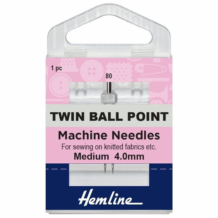 The Hemline Twin Ball Point Sewing Machine Needles are designed for practical and decorative sewing such as pin tucking, seam finishes and top stitching. Ballpoint needles are for sewing knitted fabrics, especially cotton knits. Should be used at a reduced speed.