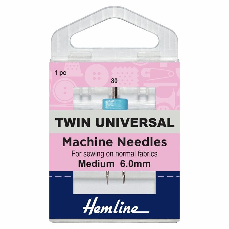 Hemline Twin Universal Sewing Machine Needles are designed for practical and decorative sewing such as pin tucking, seam finishes and top stitching. Universal needles are for sewing on normal fabrics. Use at reduced speed.