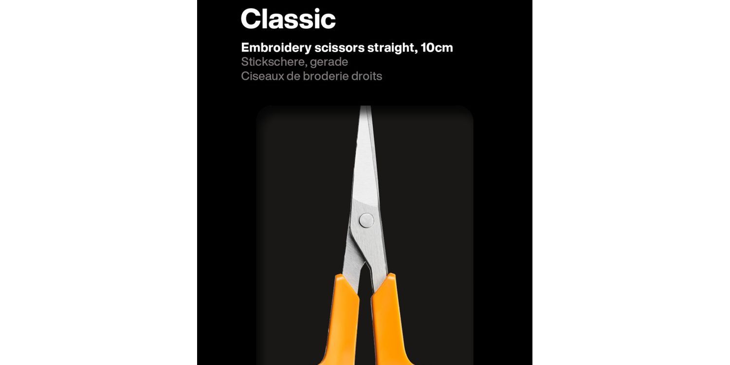 The new and improved version of F9807 (1005143). The new Fiskars Classic scissors feature improved handle and screw design with new blade stamp and packaging. These iconic, orange-handled, classic scissors are reliable and high-quality, making them the perfect long-term investment. The 10cm embroidery scissors are ideal for precision cutting while sewing and crafting. They offer an optimal cutting edge and lifelong performance with durable precision ground stainless steel blades for long-lasting sharpness. The blades have narrow and sharp tips that are ideal for detail cutting. The ergonomic and impact resistant handles ensure a good and comfortable grip