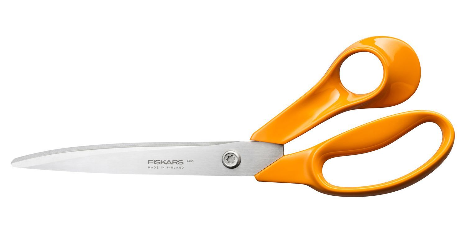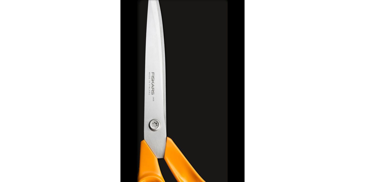 The new and improved version of F9863 (1005151). The new Fiskars Classic scissors feature improved handle and screw design with new blade stamp and packaging. These iconic, orange-handled, classic scissors are reliable and high-quality, making them the perfect long-term investment. The 25cm large universal purpose scissors are ideal for a wide variety of cutting needs with optimal cutting edge and lifelong performance. The large ergonomic and impact resistant handles ensure a good and comfortable grip.