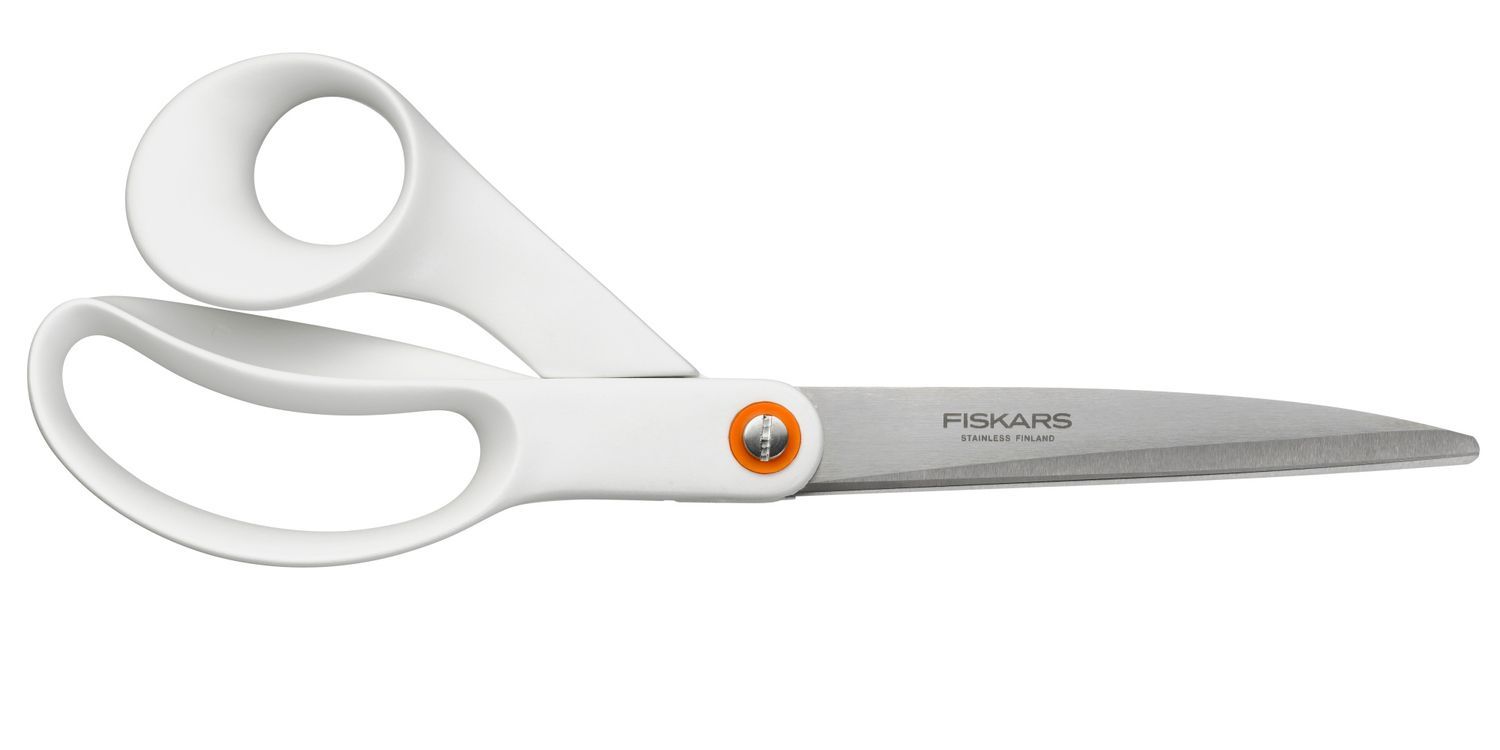 Long blades and shaped-handle for a smooth long cutting action. For thick and multiple-layers of fabric and paper cutting. 25cm. Right handed.