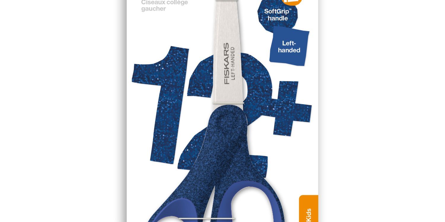True left-handed reversed blades allows kids to see their cut line. Longer blades with pointed tip for precise cutting. Ergonomic handle is sculpted to fit the natural shape and movement of pre-teen and teen hands. Glitter-packed handle has SoftGrip™ detailing for comfort. For +12 years old. Suitable for right-handed users.